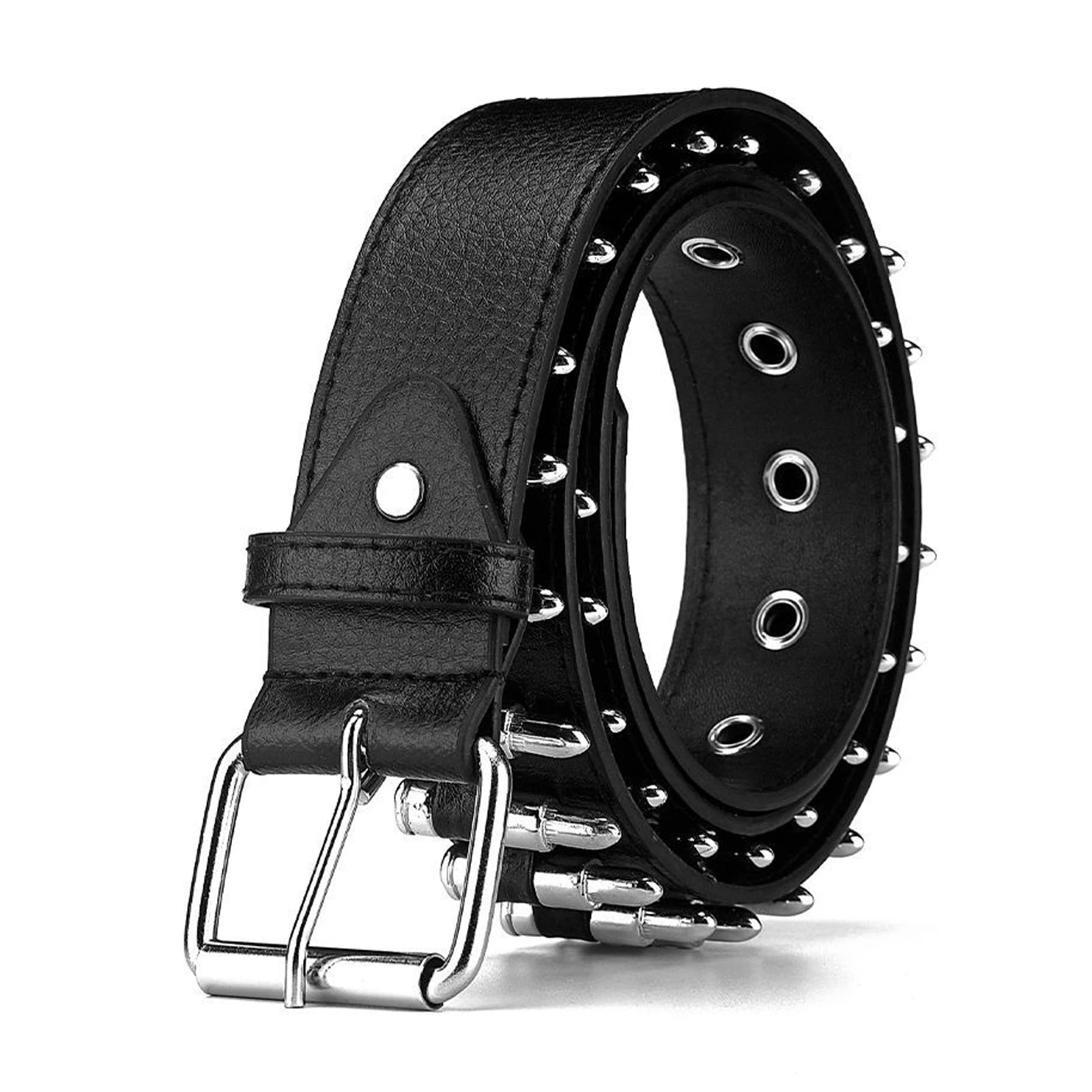 Women Men Waist Belt Punk Bullets Rivet Studded Imitation Leather Belt Hip Hop Rivet Belt for Jeans Black